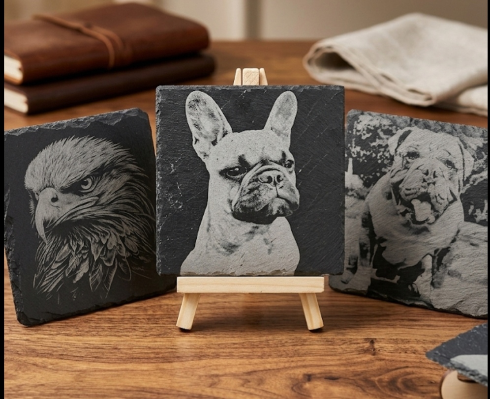 Wir verwandeln Holz, Schiefer und Metall durch Laser-Gravur in dauerhafte Unikate – handgefertigt, persönlich, unvergesslich.